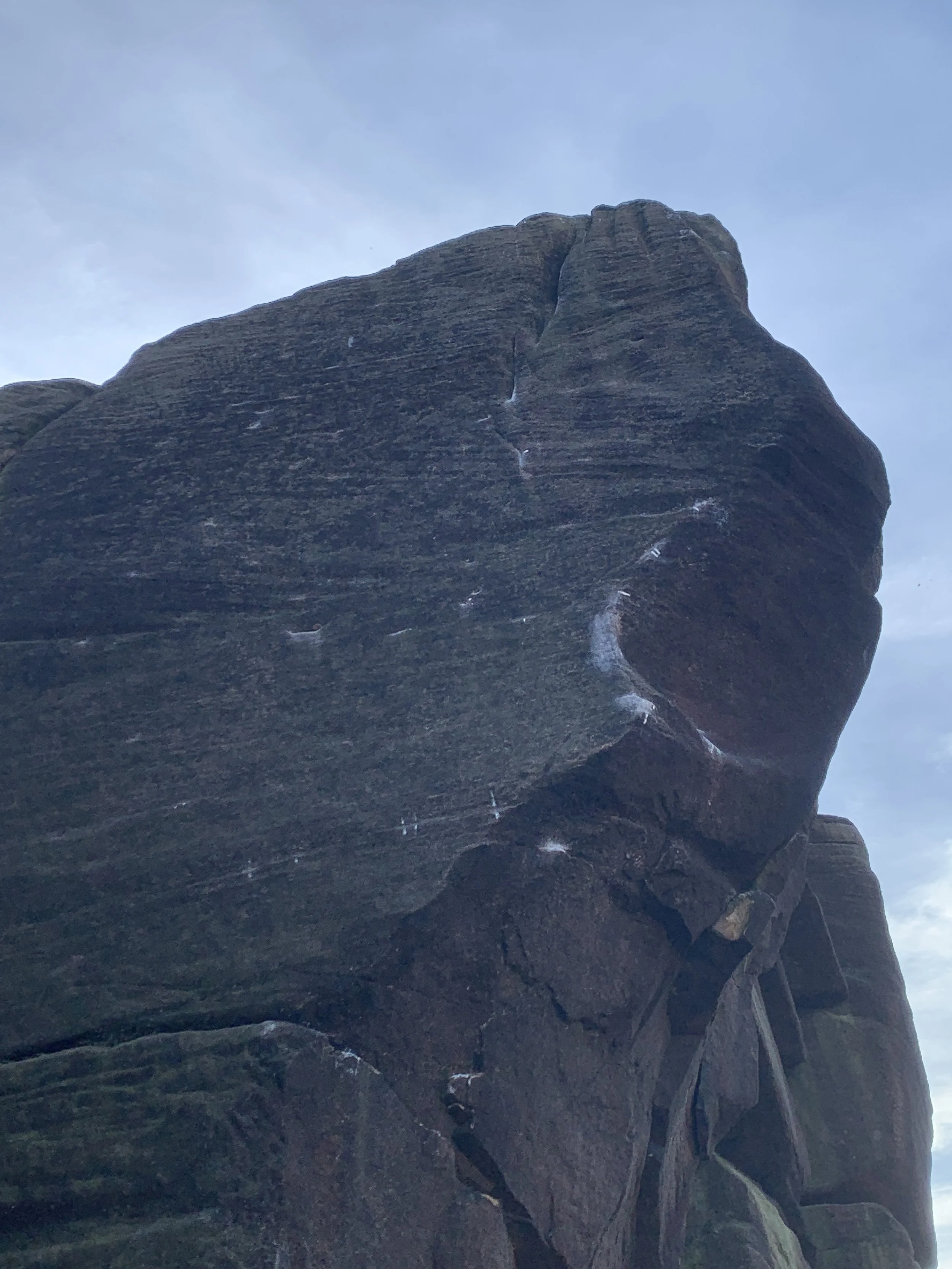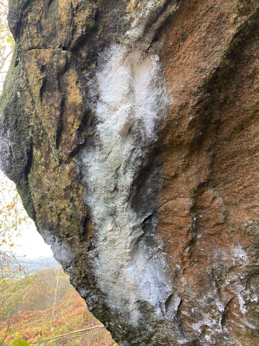 Little Richard at Baslow not receiving the respect it deserves, the pure quantity and potentially resin content of chalk that was applied has not washed off after rain.